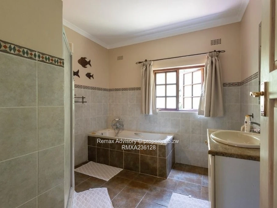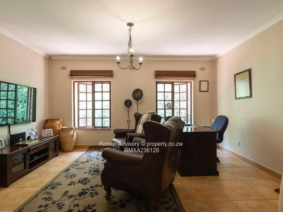 Enjoy outdoor living on the patio overlooking a sparkling swimming pool and manicured garden with automatic sprinklers. Equipped with 15,000L water tanks running through an industrial filtration system, a 5KVA solar system, a 10KVA backup generator, with staff quarters, BICs, guest toilets, and a storeroom.